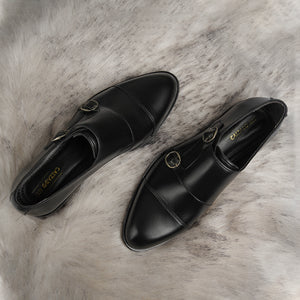 Brogue monk formal shoes combine traditional craftsmanship with contemporary style. Featuring decorative perforations (broguing) and a distinctive buckle closure, these shoes offer a refined look suitable for both formal occasions and smart-casual events. Crafted from high-quality leather, they provide comfort and durability, making them a timeless addition to any wardrobe.